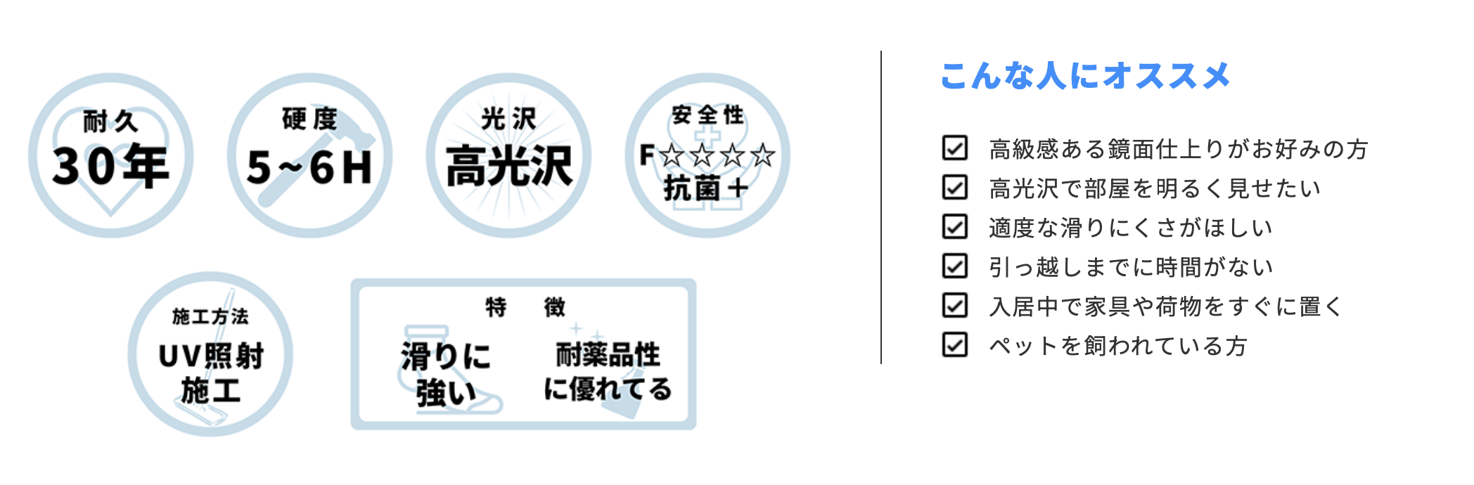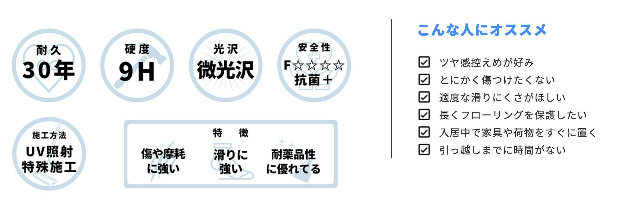 フローリングや水回りを、汚れ・傷・日焼けなどから守り 床材を長持ちさせます。